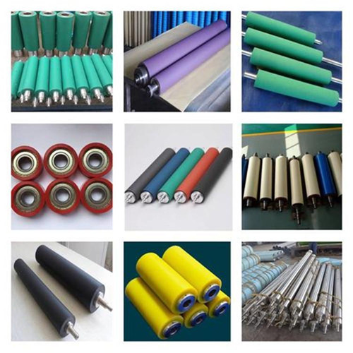 膠輥是以金屬或其他材料為芯,外覆橡膠經硫化而制成的輥狀制品。主要應用于造紙、印染、印刷、糧食加工、冶金、塑料加工等方面。利用膠輥面膠層的微量彈性變形使產品面承受一定的壓力,以適用于工業要求但不至于產生過度的剪切應力,損傷產品。例如:造紙機中的壓榨輥,印染機中的扎液輥,能在不損傷紙或布的情況下,擠去紙或布中的水分,這種膠輥的硬度一般為70-90度。由于膠輥具有耐酸耐堿和不生銹的優點。在印染、帶鋼、帶銅等工業的酸洗中也得到廣泛的應用。